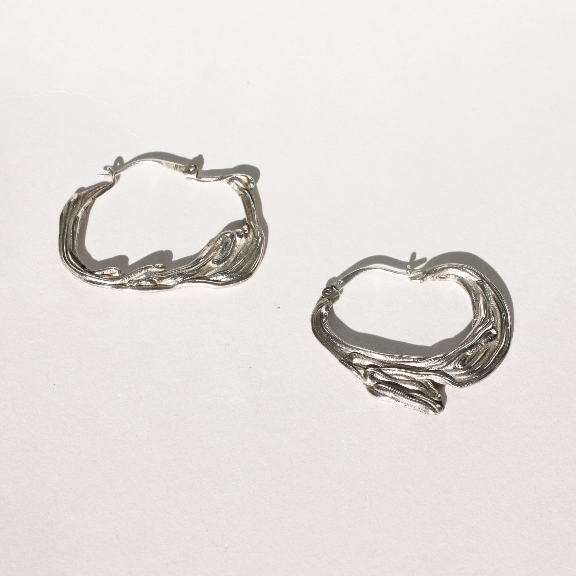 Elegantly bold, individually carved earrings, cast using the sand casting method in sterling silver.
